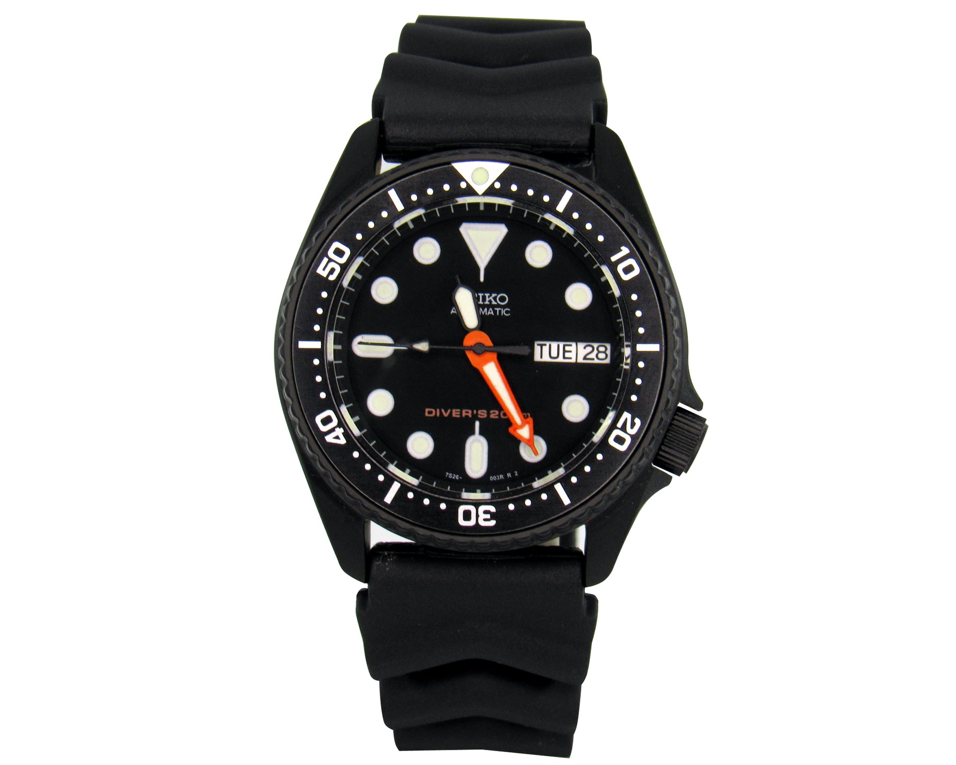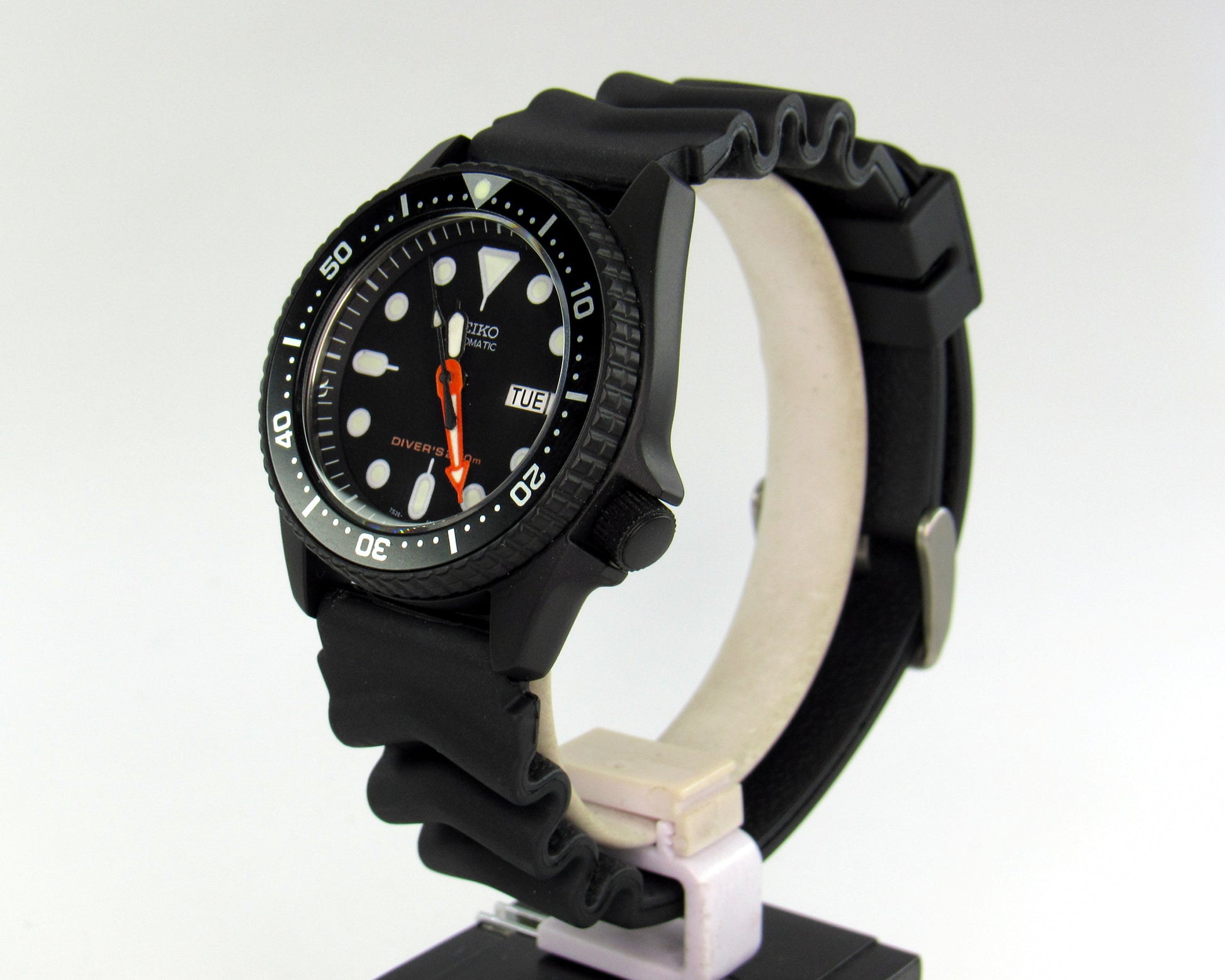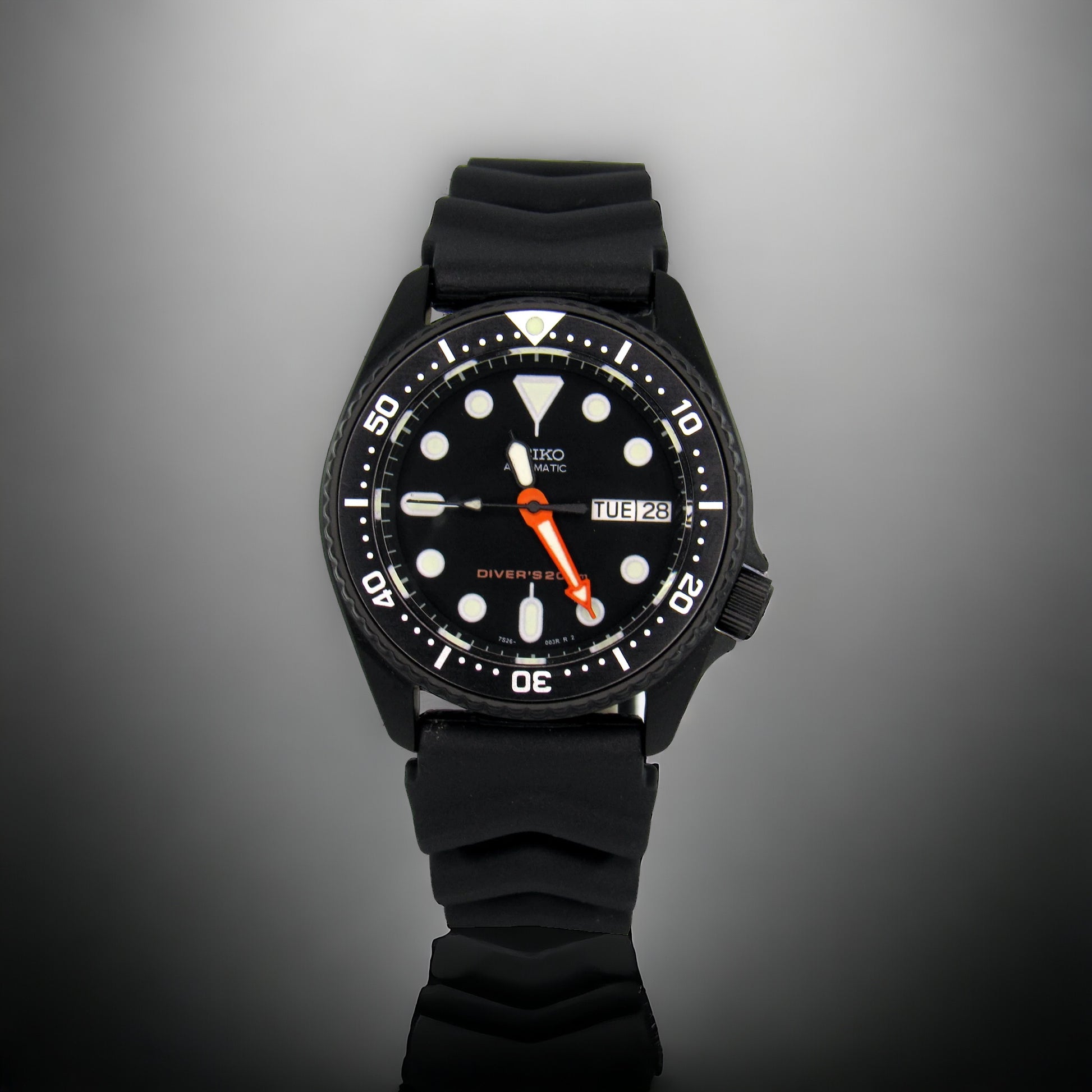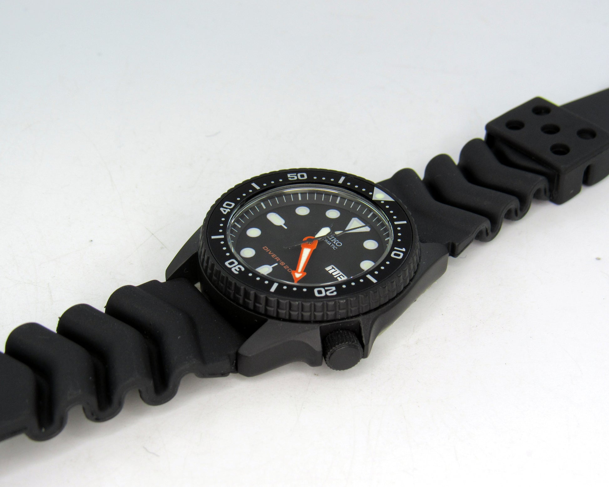 Vintage Seiko skx013 Graphite black Cerakote rubber strap 38mm Seikomod